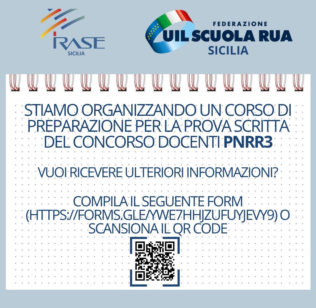 IRASE e UIL Scuola Rua Sicilia organizzano corso di preparazione mirato e completo per affrontare la prova scritta del concorso docenti Pnrr3. A disposizione dei corsisti saranno messi a disposizione: ✅ Strumenti e strategie per la prova scritta ✅ Approfondimenti sui contenuti richiesti dal bando […]